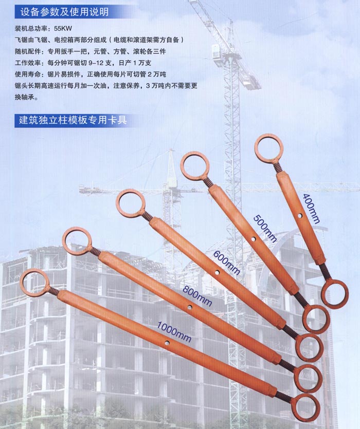 裝機(jī)總功率:55KW 飛鋸由飛鋸、電控箱兩部分組成(電纜和滾道架需方自備)隨機(jī)配件:專(zhuān)用扳手一把,元管、方管、滾輪各三件工作效率:每分鐘可鋸切r}1tiJ一12支,日產(chǎn)1萬(wàn)支使用壽命:鋸片易損件,正確使用每片可切管2萬(wàn)噸鋸頭長(zhǎng)期高速運(yùn)行每月加一次油,注意保養(yǎng),3萬(wàn)噸內(nèi)不需要更換軸承。